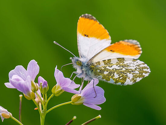 Ab März sieht man sie wieder fliegen: Schmetterlinge. Mit den steigenden Temperaturen segeln immer mehr dieser anmutigen Insekten in den vielfältigsten Farbkombinationen durch die Lüfte und verzaubern uns mit ihrer Eleganz. Doch sie können weit mehr als nur hübsch auszusehen. Ob im Gewand einer Wespe oder als Vogelkot getarnte Raupe haben Schmetterlinge so einige Tricks auf Lager, um sich vor Fressfeinden zu schützen. Doch dem menschengemachten Verlust an Lebensraum und Futterpflanzen können sie kaum etwas entgegensetzen. So ist der Artenreichtum bei den bunten Insekten inzwischen einer gewissen Eintönigkeit gewichen. Während man die gelben Zitronenfalter noch vielerorts finden kann, gelten Arten wie der Maivogel (Euphydryas maturna) und der Große Schillerfalter (Apatura iris) mittlerweile als extrem selten.