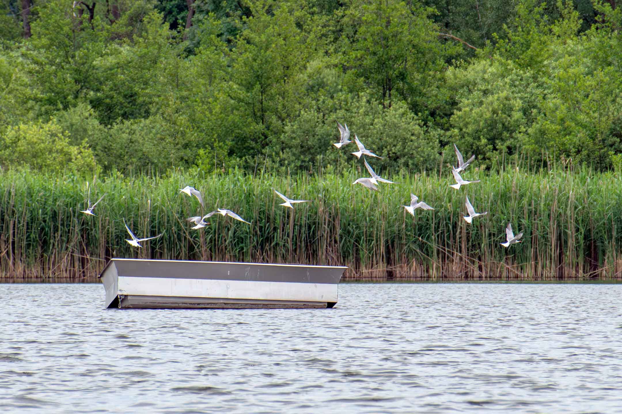 Seit die Heinz Sielmann Stiftung im Frühjahr 2023 die ersten beiden Brutinseln mit Unterstützung der Fischerei Köllnitz, der Naturwacht Brandenburg und weiteren Ehrenamtlichen installiert hat, haben sich die Brutplätze schnell etabliert. „Seitdem verzeichnen wir jedes Jahr eine große Anzahl an Nachwuchs bei den Flussseeschwalben. Die Groß Schauener Seen sind dadurch auf dem besten Weg, ein bedeutendes Brutgebiet für diese seltene und faszinierende Vogelart in Brandenburg zu werden“, freut sich Tim Funkenberg, Gebietsbetreuer der Sielmanns Naturlandschaft Groß Schauener Seen.