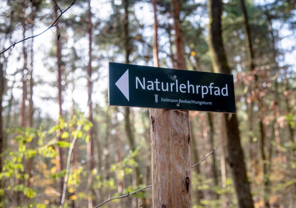 Der mächtige Aussichtsturm aus Holz markiert den Endpunkt des neuen Naturlehrpfads. Von der Turmplattform eröffnet sich dem Besucher aus luftiger Höhe ein weiter Panoramablick über die Seenlandschaft. Kormoran, Rohrweihe, Wasserralle, Graugans, Rotmilan, Schwarzmilan, Seeadler und Kranich sind hier heimisch oder finden hier Nahrung. Mit etwas Glück und Geduld lässt sich über dem Wasser sogar der kreisende Fischadler beobachten.