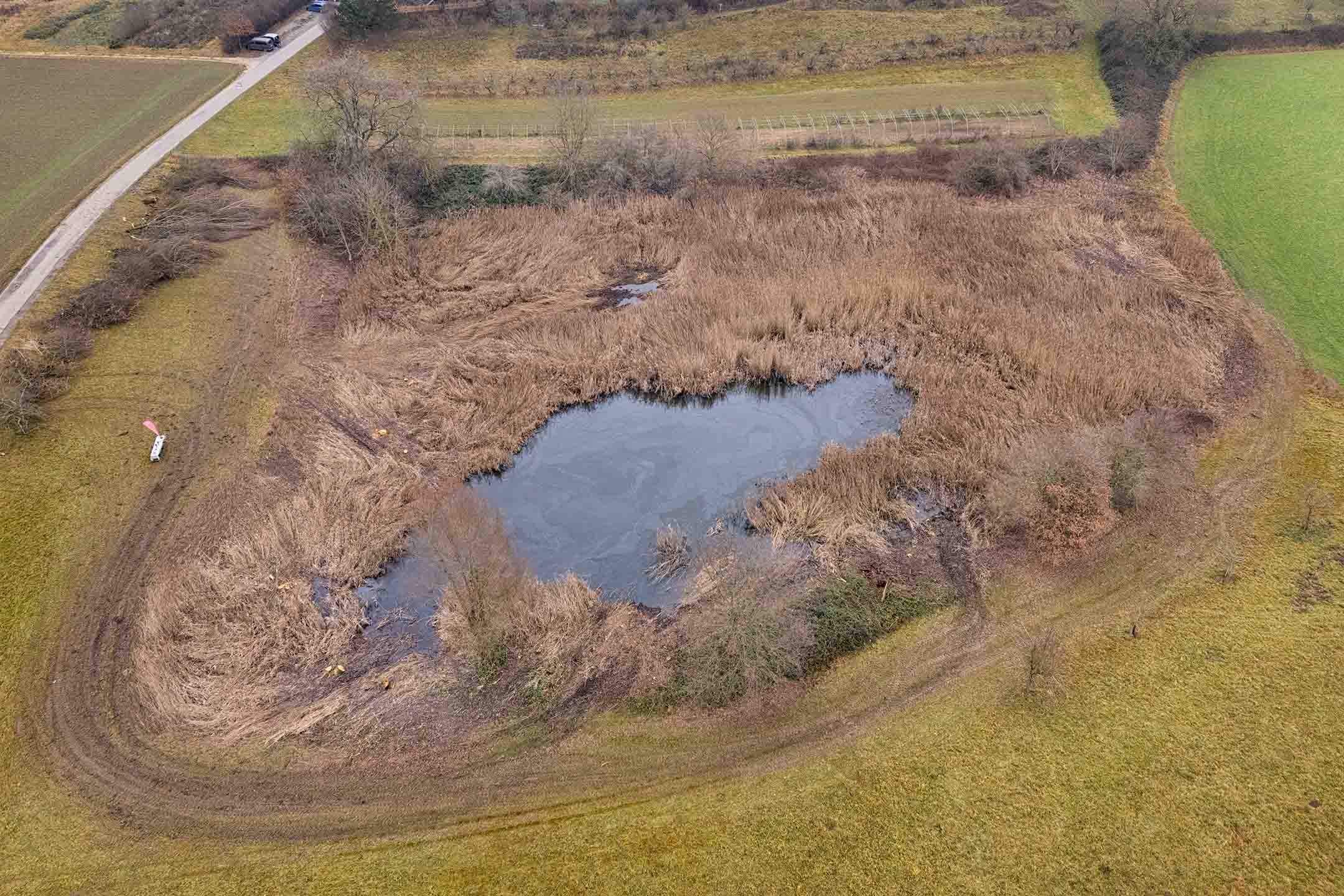 Die Wasserfläche des Weihers wird dazu von rund 2.000 auf 6.000 Quadratmeter erweitert und bestimmte Gewässerbereiche werden vertieft. Darüber hinaus werden vier weitere angrenzende Amphibienweiher reaktiviert und ein Steilufer mit Brutröhren für Eisvögel angelegt. Auf diese Weise sollen vielfältige, strukturreiche Biotope entstehen.